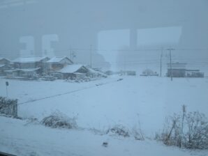 近江八幡くらいかな?雪が積もってきた。