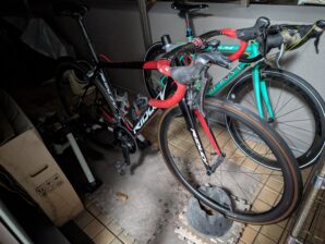 ローラー用のロードバイクはデローザちゃんなのだが、ペダルの板バネが割れてしまったので、リドレーちゃんに載せ替え。