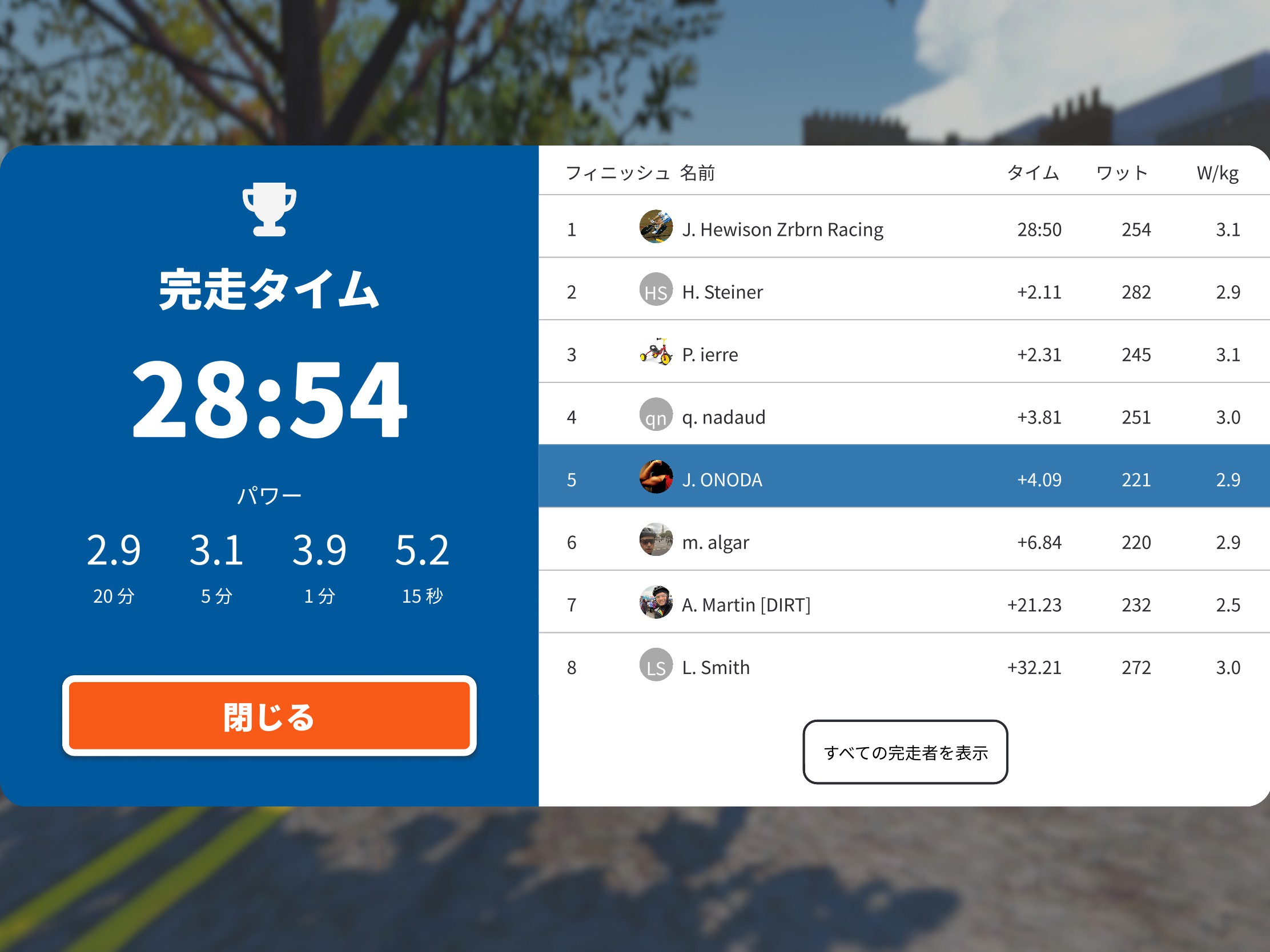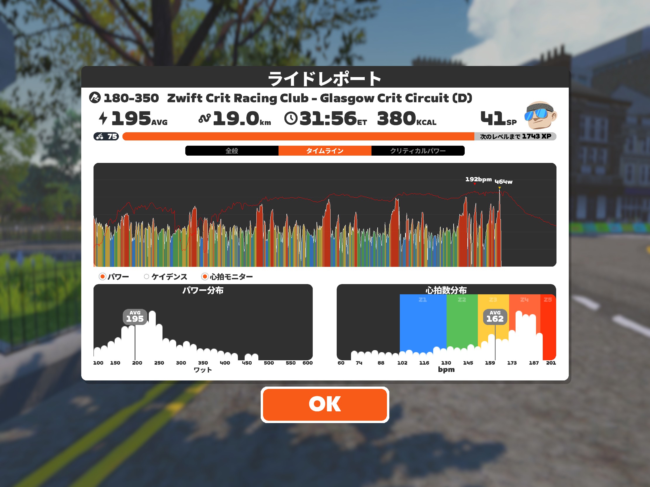 前回、2周目の坂区間で千切れたレースに参加。今回は最後までトップ集団に残れたが、スプリントに参加する脚が残っておらず終了。