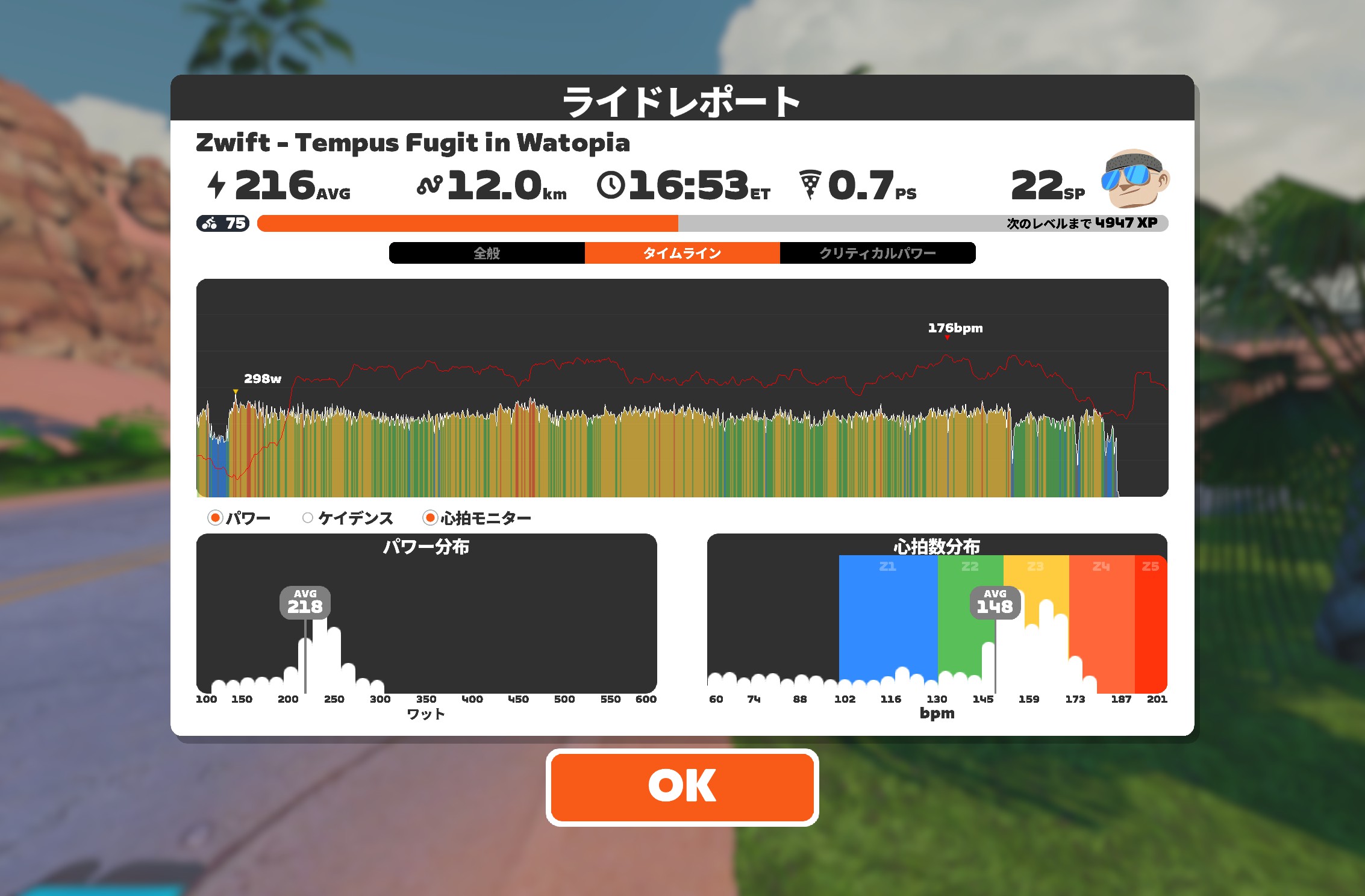 トレーニング記録20260108【ロードバイク】 トレーニング記録 X Facebook0 はてブ0 LINE 2026.01.09 昨晩は帰ってからZWIFT。 Bペーサーと16分。一昨日より1分長く。 コレ、、、以前のように1時間できるようになるのか? パワメが低い方に振れているようにしか思えない。笑 そもそも後輪が固定されているから上半身を使えないのだから、パワーは出にくいというのは言い訳ではあるが、、、。 この記事が「いいね」と思った人は下記のバナーのどれかを押していただけると嬉しいです。