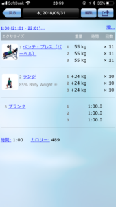 さて、昨晩は筋トレ。ランジと胸。