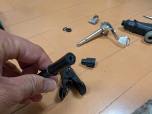 初期の状態やと、ヘッドの中にあるゴムパッキンの径が小さいのでなかなかバルブが入らない。