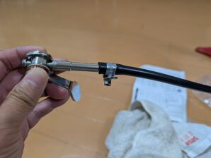 気を受けなければいけないのは、チューブを金具の固定バンドに入れてから、ヘッドを差し込まなければならないこと。