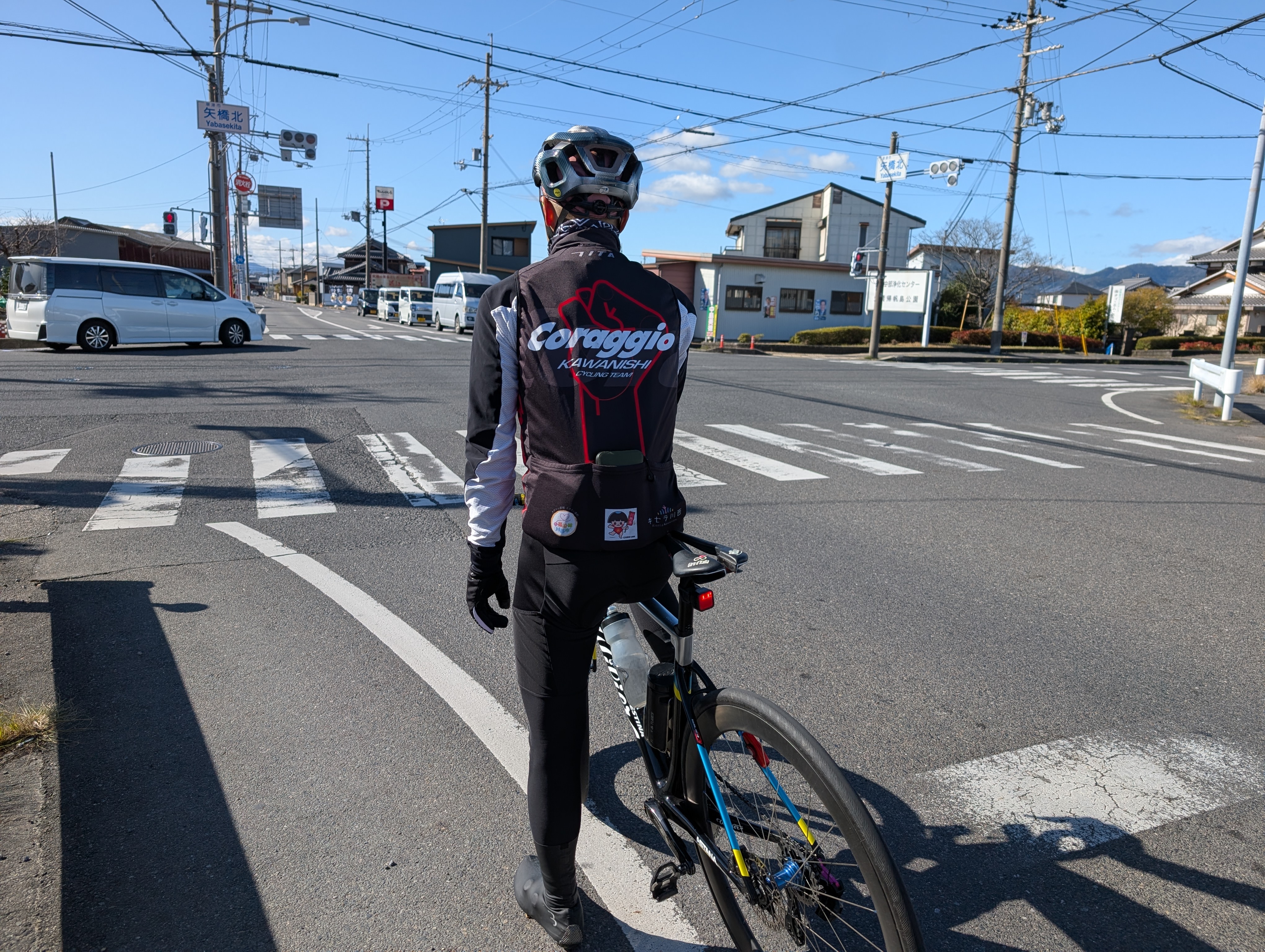 とりあえず、倉庫から琵琶湖大橋の前の道(突き当り)までが今回の朝練のコースになるらしい。
