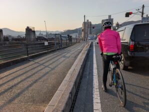 登り始める。ヒルクライムでペダリングを意識したことはあまり無いな〜なんて思いながら登る。強弱をかけずに一定の速度でペダリングをする意識。